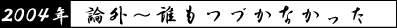 | 12.22 | 飯田橋の「葉月」にて、菊池、矢代、マロフィン、小野選手が参戦し、恒例の忘年会が開催される。遠道選手は欠場。土肥氏は論外。 |